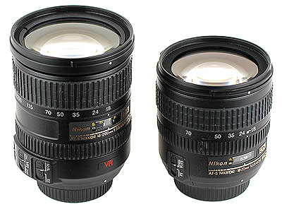 Suprenant ou pas, le 18-200mm VR est le grand-frère du 18-70mm, si je puis me permettre. Il partage beaucoup de ce dernier, notamment l'apparence, mais les matériaux de construction et les caractéristiques, dont l'appartenance à la famille DX, l'absence d'une bague de réglage de l'ouverture du diaphragme (indiqué par la lettre "G"), la présence de verres "ED", le focus interne (lettres "IF") et, très bonne chose, le "silent wave motor", qui donne cette rapidité à l'autofocus, tout en étant ultra silencieux. À part le déplacement de l'anneau de focus plus près du boîtier, l'ajout d'une petite longueur pour loger les composantes VR-II (pour l'anti-vibration), le déplacement de la fenêtre de l'échelle des distances et la taille de l'attache des filtres qui passe à 72mm (comparé à 67mm pour le 18-70mm), les deux lentilles sont très ressemblantes, tel qu'illustré dans l'image ci-dessous: