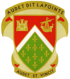 Ces armoiries sont également tirées du site suivant: et tel que mentionné, je doute de la validité de ces armoiries parce qu'elles sont coiffées du titre "Audet Dit Lapointe". Elles sont cependant intéressantes, parce que l'emblême central est décoré d'un château doré à trois tours, à la gauche, sur fond rouge, qui est normalement associé au Poitou, la région de la France dont serait issu notre premier ancêtre, Nicolas Audet: