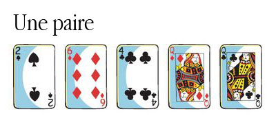 La main constituée d'une "paire" est l'une des plus courrantes. Elle consiste à avoir deux cartes de même valeur. À l'instar de la main "deux paires", pour laquelle la carte seule devient la carte "kicker", les trois cartes restantes dans ce type de main deviennent également des cartes "kickers".